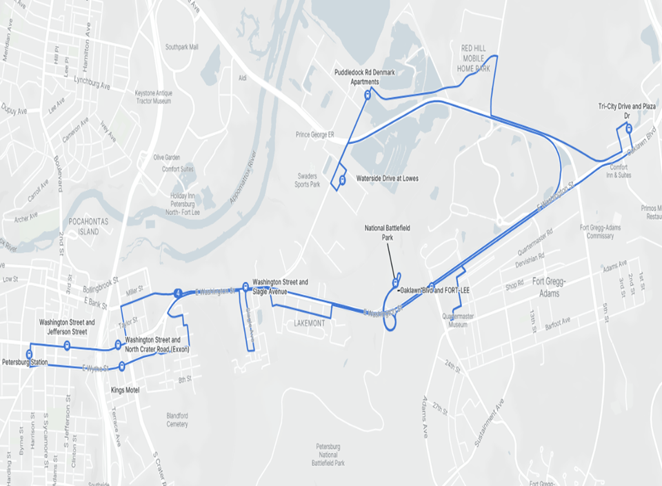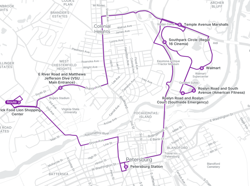 Petersburg Area Transit will not be servicing Colonial Heights until further notified.